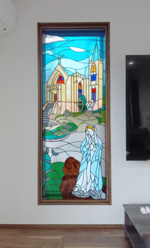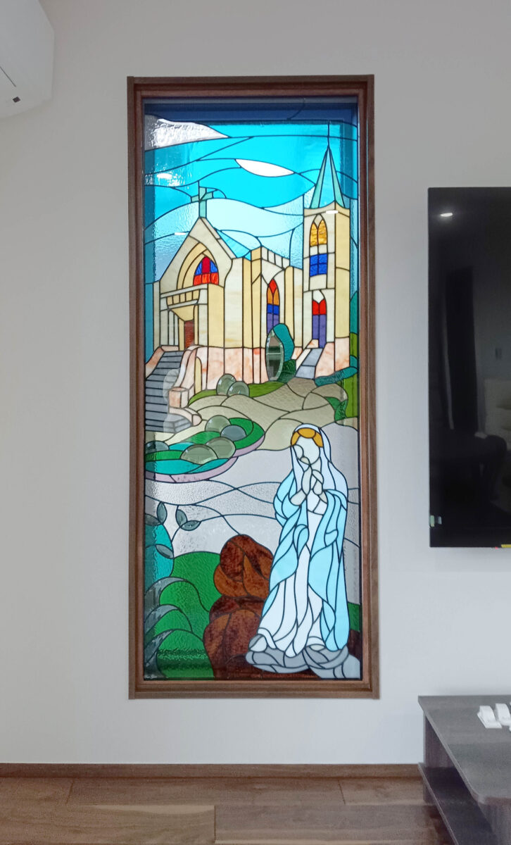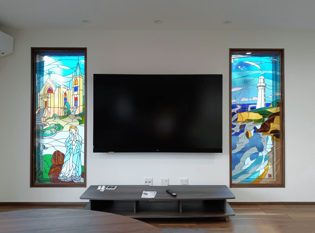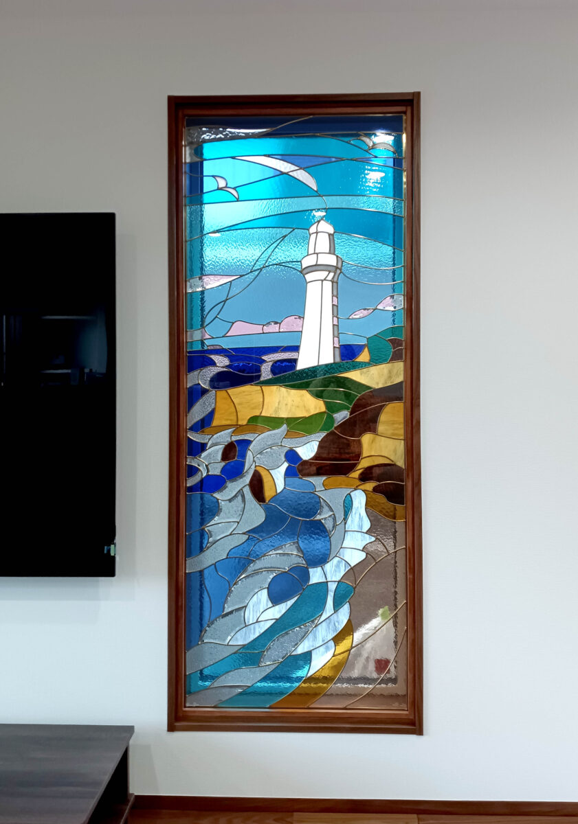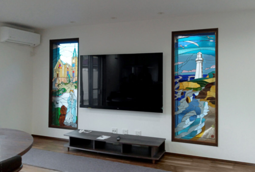 ご夫婦の「思い出の風景をステンドグラスにしたい」というご要望をいただき、特注にて制作いたしました。
