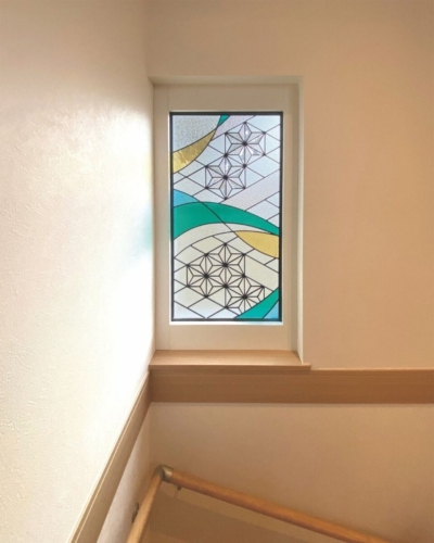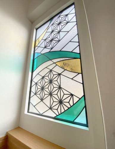 和の伝統文様「麻の葉」にモダンなアレンジを加えた、特注ステンドグラス。